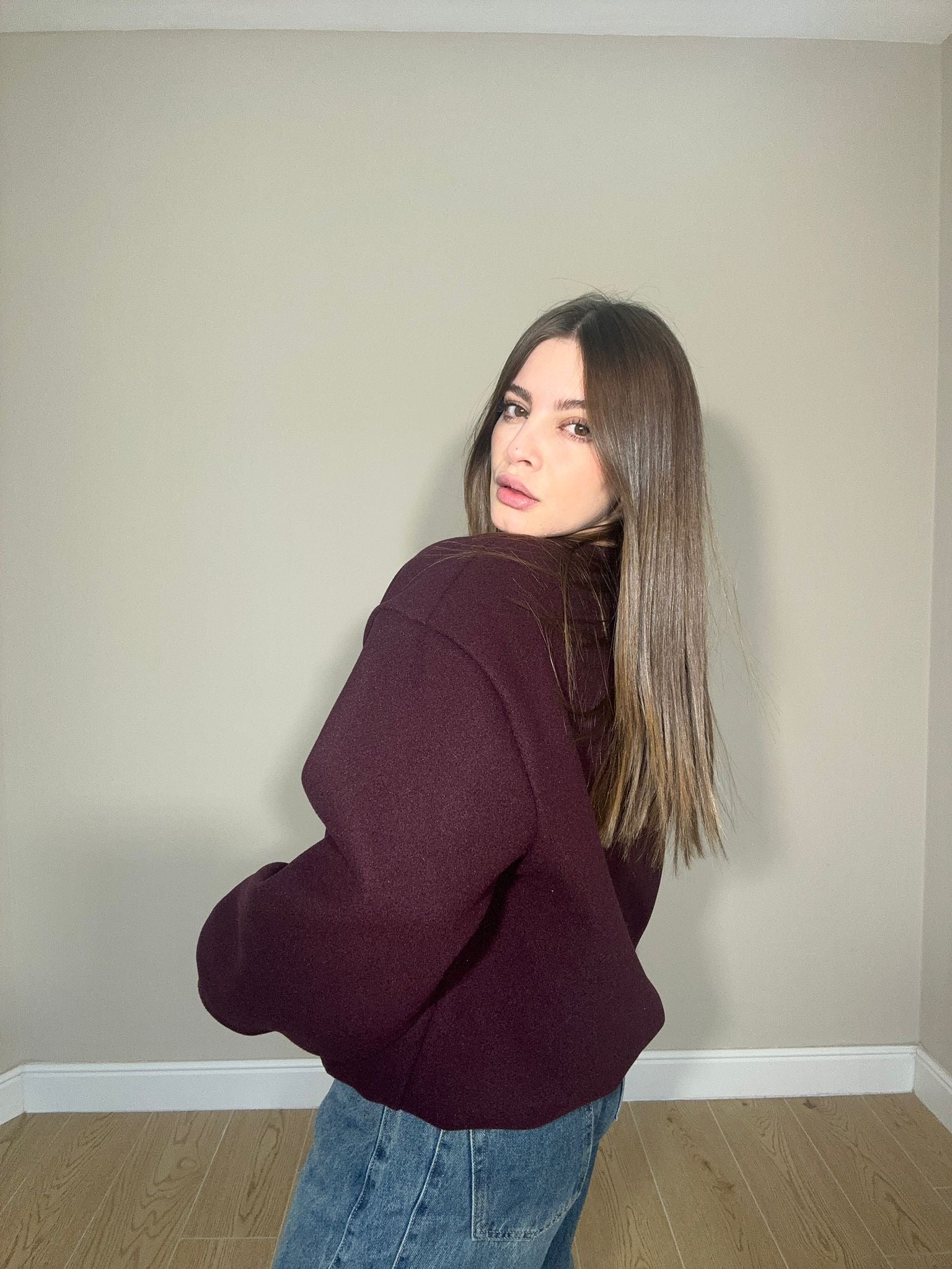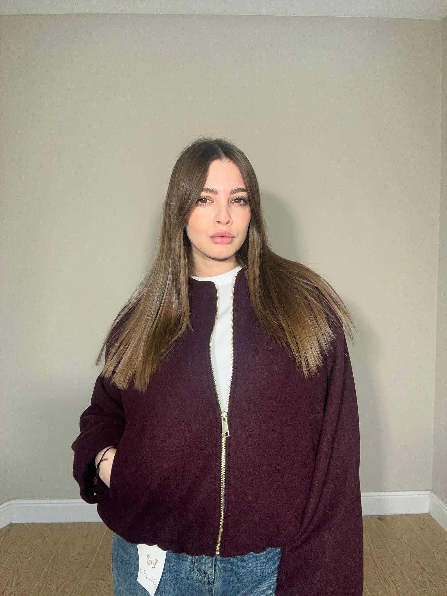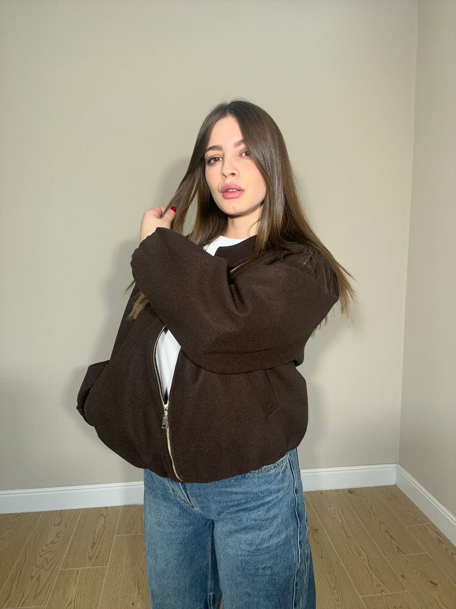 Bomberino con collo rotondo a maniche lunghe a sbuffo con polsino interno elasticizzato chiusura frontale