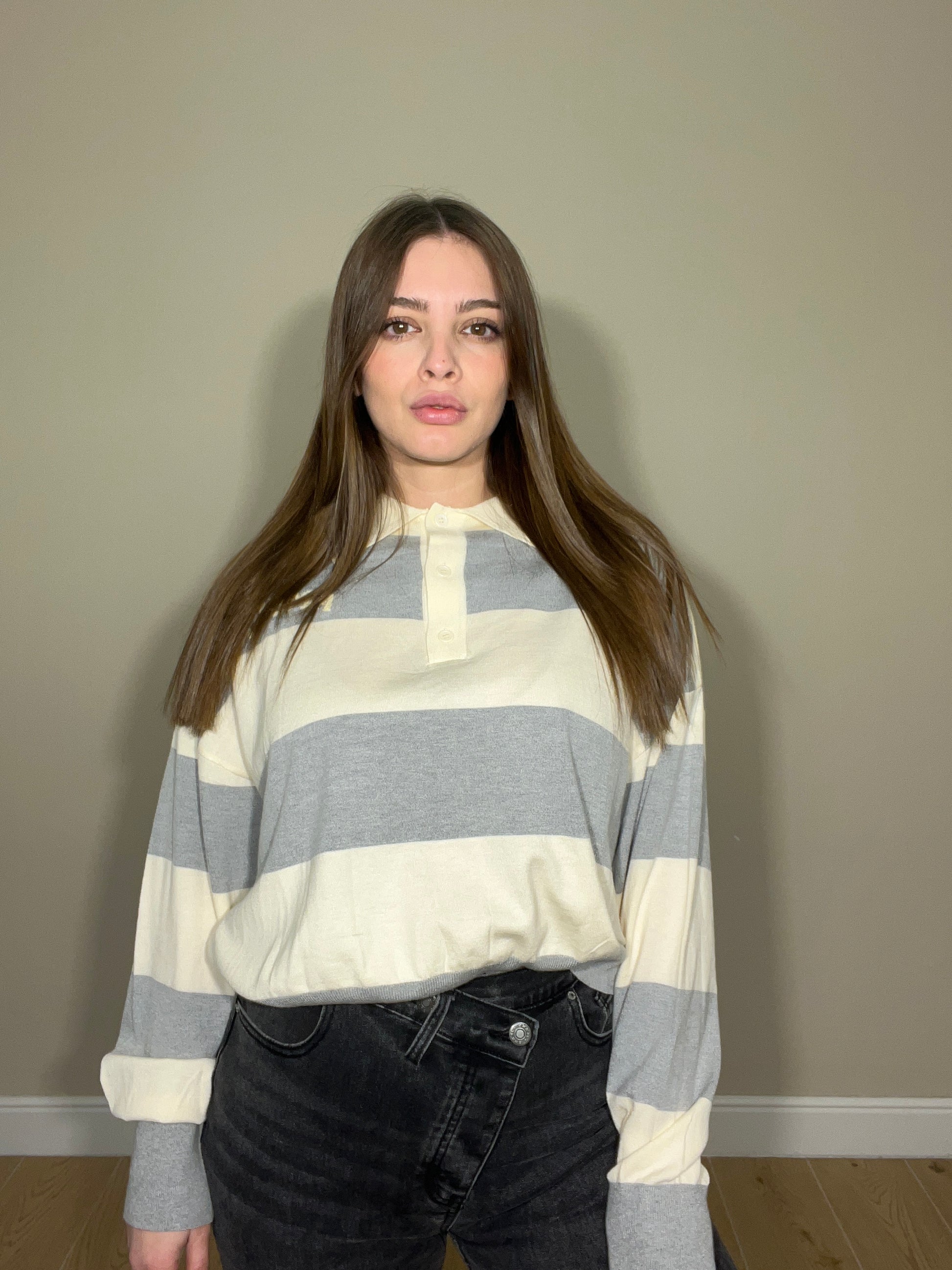 Maglia polo con collo a revers a manica lunga
