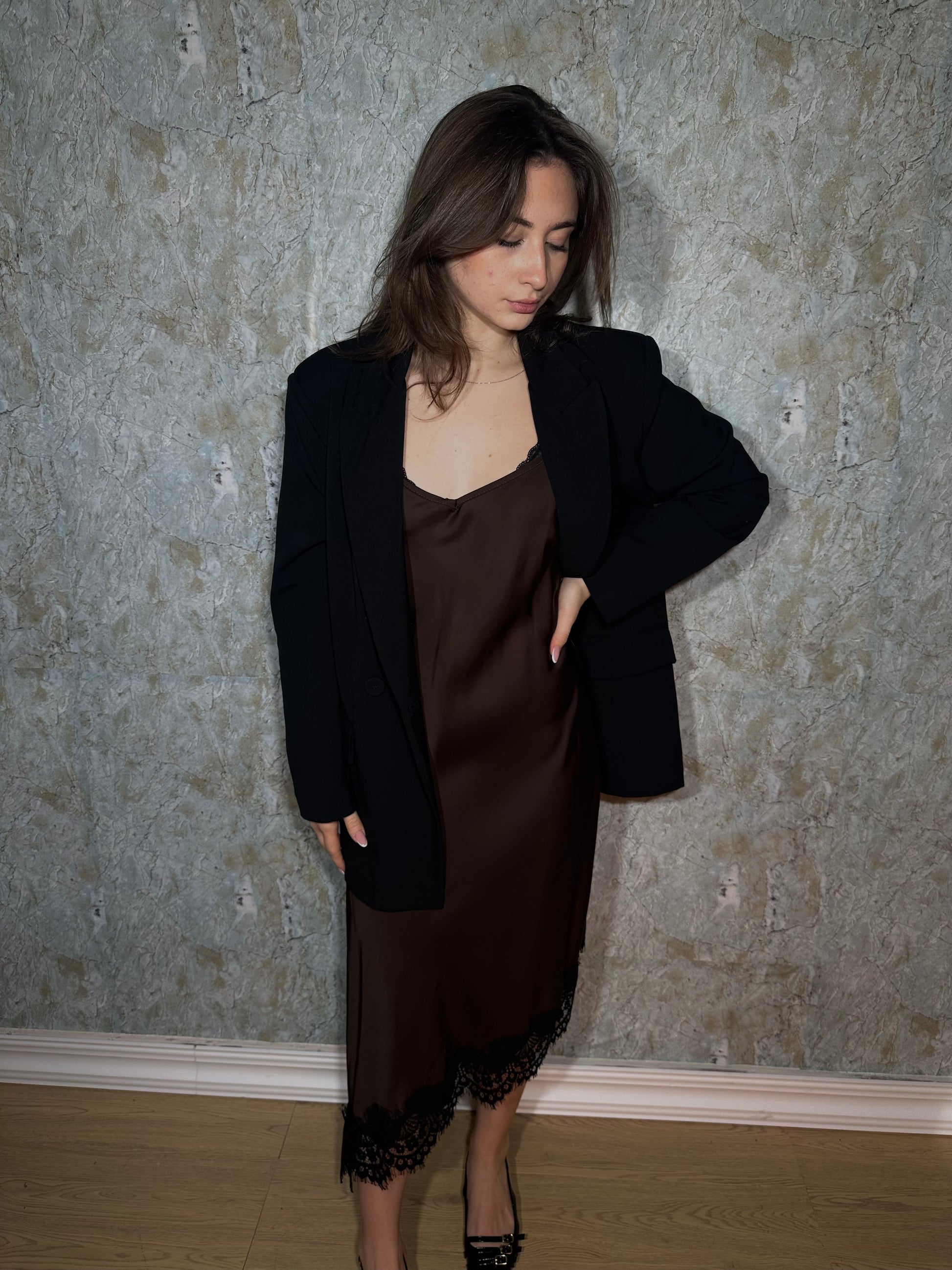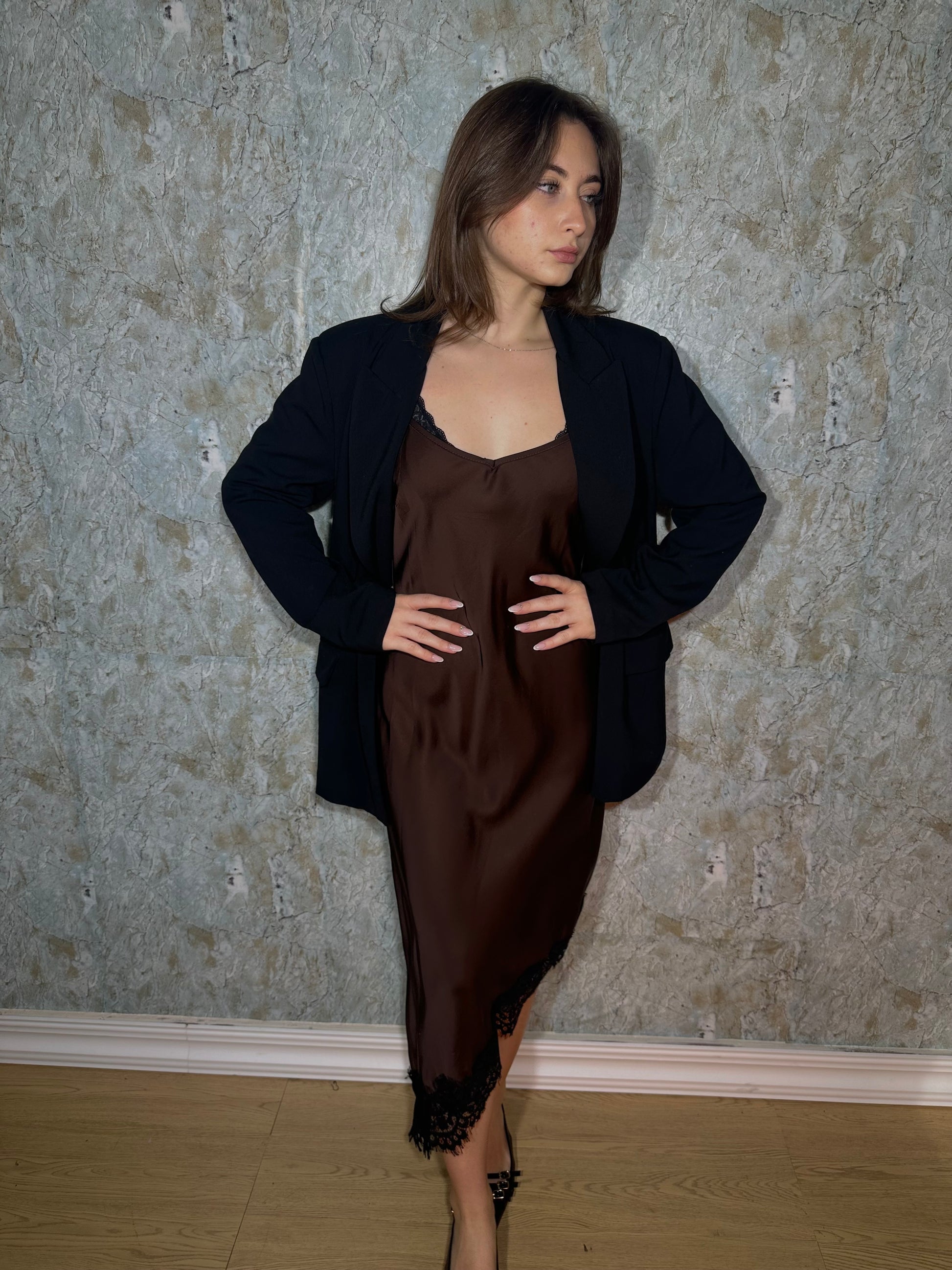 Vestito charme sottoveste con scollo a v e spalline sottili dettagli in pizzo
